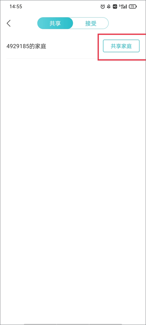 2、进入到云米智能家居app的共享界面,选择右边的“共享家庭”。