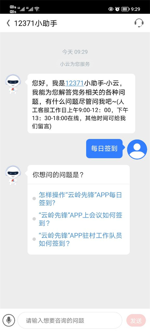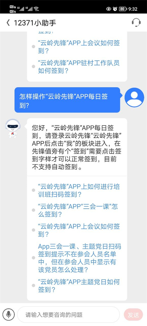 2、在聊天框当中输入每日签到就能够看到所有签到的问题。