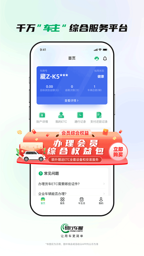 易行车服app官方版是一款用于ETC发行推广、ETC售后服务的便捷管理工具,对于经常往返异地的客户朋友,ETC的快捷想必都非常了解,同一般的ETC使用方法一样,在用户办理好ETC卡并绑定设备后即可上下高速走ETC通道,但有易行通发行的ETC卡可支持全国通行的打折活动,基于不同省份和地区的高速政策,可享受最优惠的折扣,需要注意的一点就是车辆类型,也是享受折扣的另一大特点。另外除了满足高速出行ETC的发行,售后服务也是易行通的一大特色,包括设备故障的查看与解决方法、高速不抬竿的原因以及账单、还款异常等用户尤为关心的问题,在这里一并都有得到解决,即便系统问答不能满足你的问题需要,也可以通过在线客服进行咨询,更多功能与服务体验,赶紧下载尝试吧!