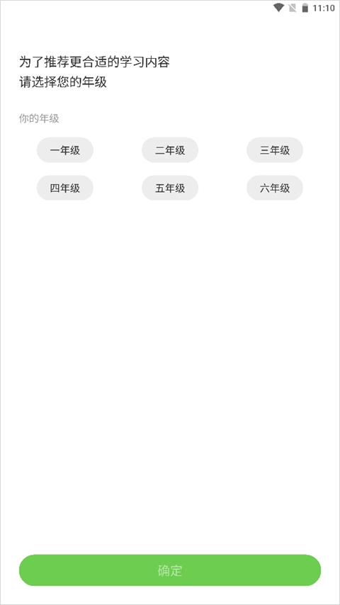 1、用户进入app之后需要选择自己的年级,选好之后就可以点击“确定”。