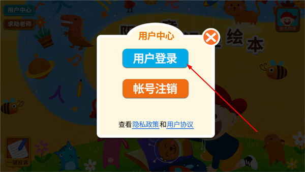 1、打开阳阳识字绘本app,进入主页,点击左上角的用户中心,输入验证码;