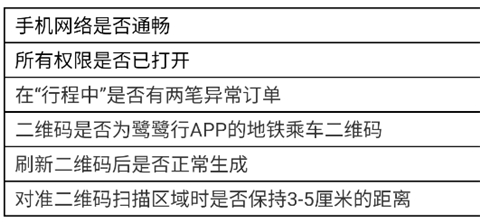 2、若您尝经过试后仍然无法成功加载二维码,为不影响您的出行,请您先采用其他方式乘坐地铁,之后请将鹭鹭行APP版本、您的手机型号及版本提交至“帮助与反馈”,后台工作人员会尽快核查并进行回复。