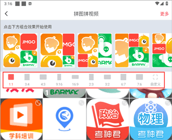 5、拼图拼视频:支持多种模板,图片和图片拼图,图片和视频拼图,视频和视频拼,也支持长图拼接。