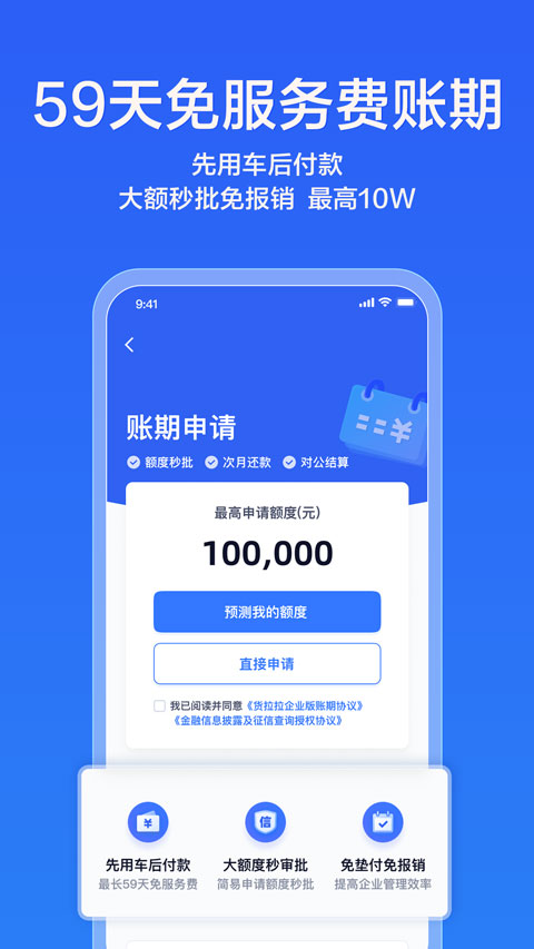 月结账期:30天免息月结,先用车后付款,资金灵活流转