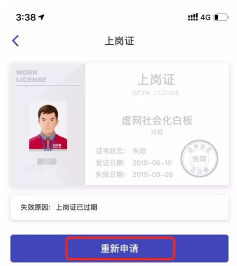 3、在技能证书页面查看拥有的上岗证及证书状态;