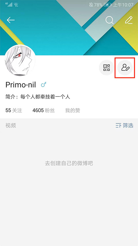 3、进入到个人主页界面,选择右上角“编辑”选项,