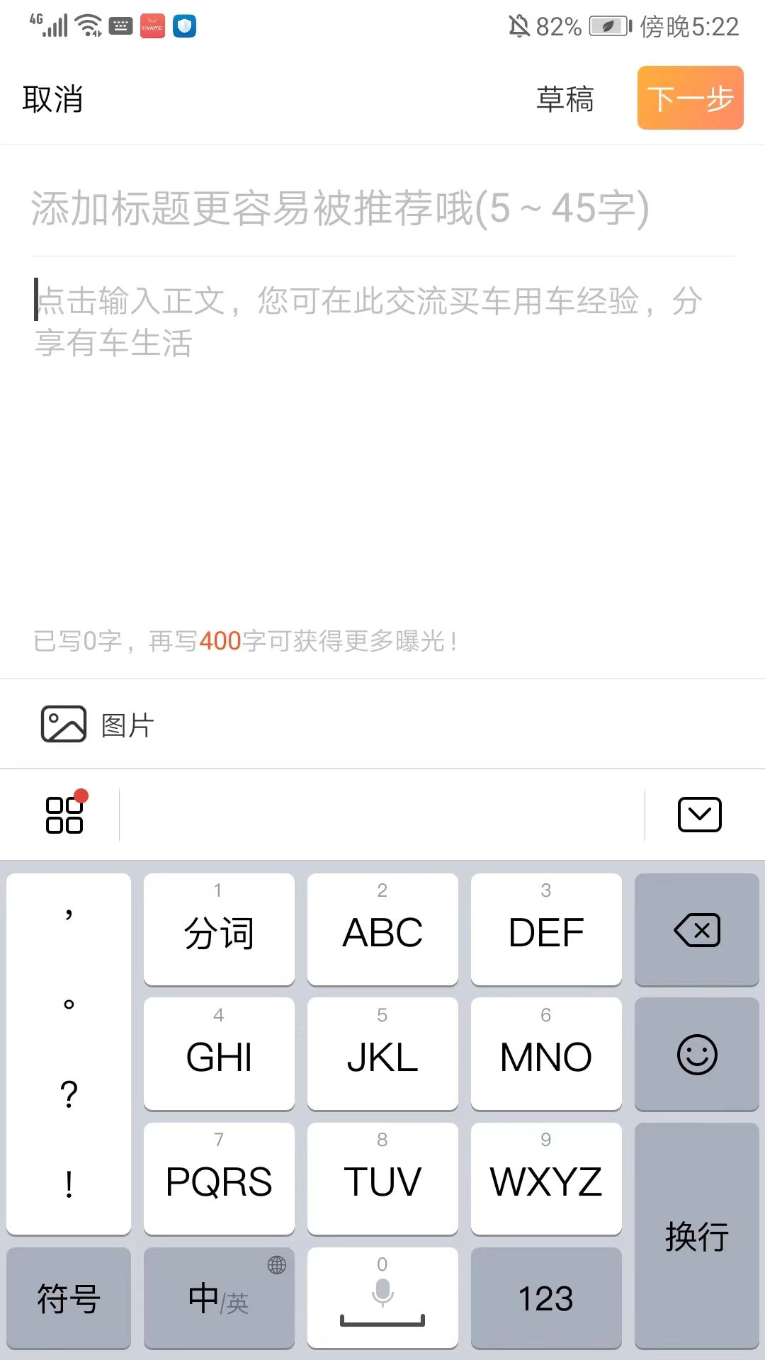 3、进入编辑界面,编辑好文章标题和内容后,选择右上角【下一步】选项就可以发布文章了。