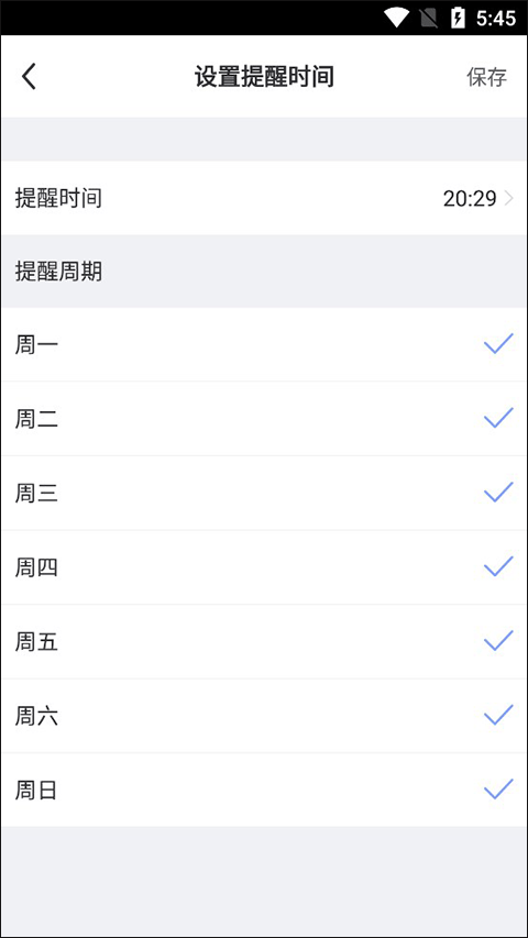 现在我们就可以设置每日练习提醒了,大家可以设置提醒周期和提醒的时间。