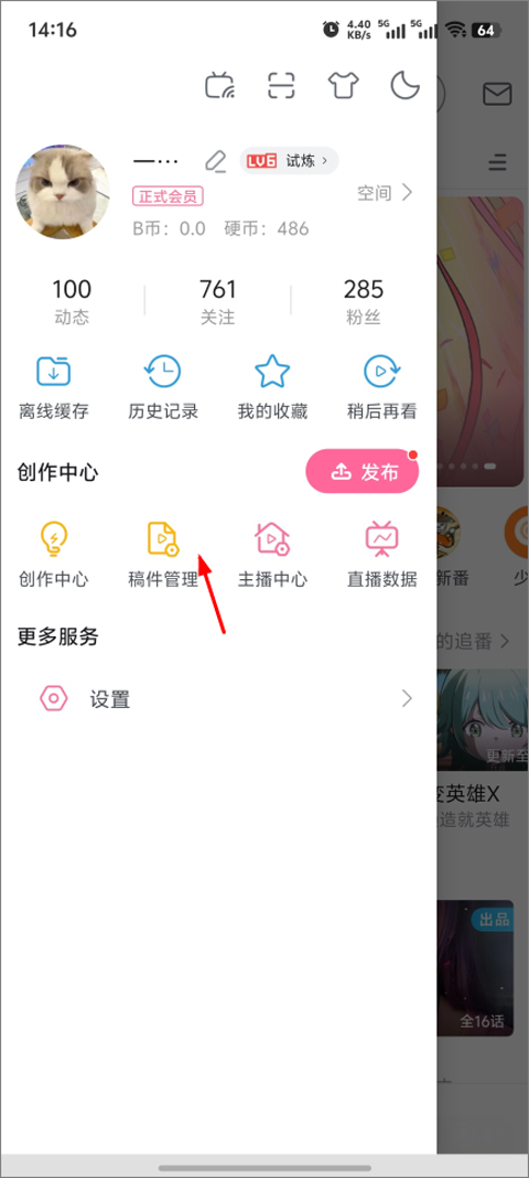 3、然后选择找到要删除的投稿,点击更多,选择删除;