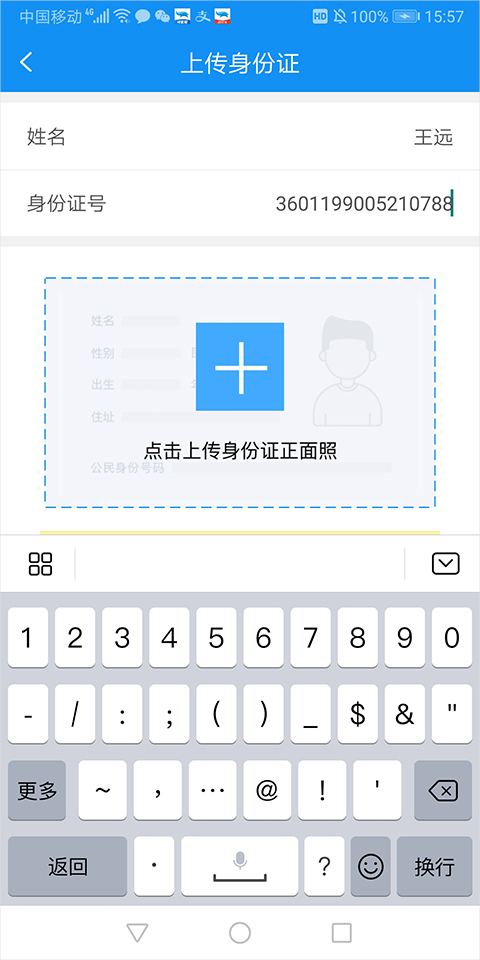 4、实名认证需要输入个人真实姓名和身份证号,并依次上传身份证正反照片
