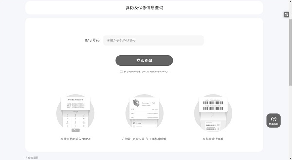 • 若显示“抱歉,查询不到XXX相关信息”,请确认您输入的IMEI码是否有误,建议您核实后再验证;另外,请确认购买渠道是否为官方授权渠道。