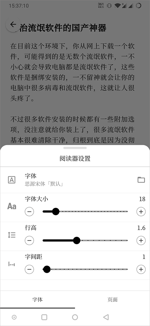 4、阅读器:去除文章干扰信息重新排版,阅读设置高度自定义,随时一键换装