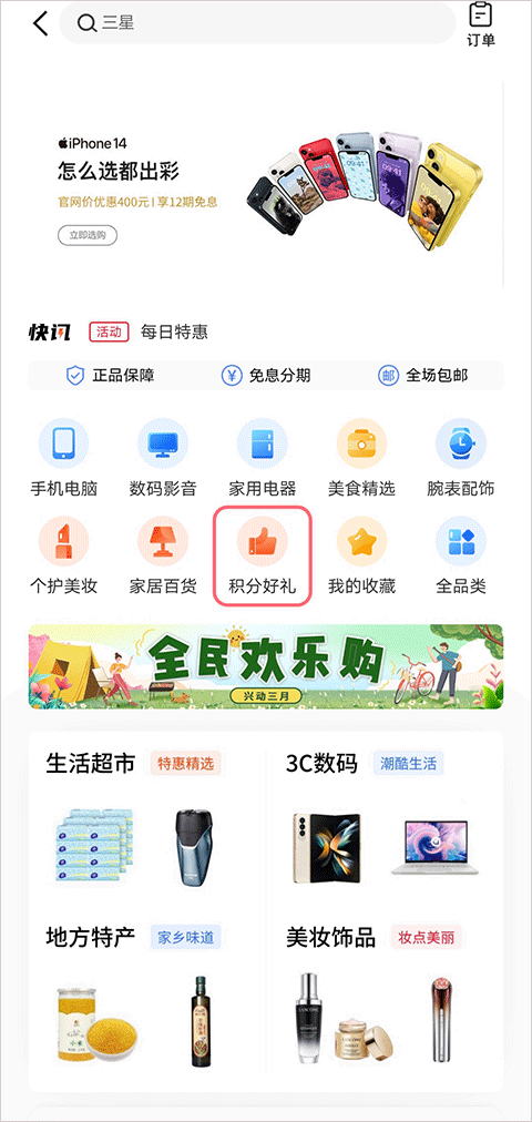 积分礼品随心兑,积攒的每一分都是惊喜,全场分期商品包邮0息0手续费