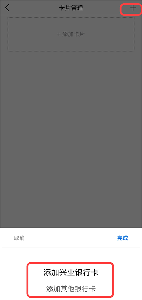 3、最后点击右上方“+”选择银行类型点击完成,输入姓名、证件号后即可绑定。