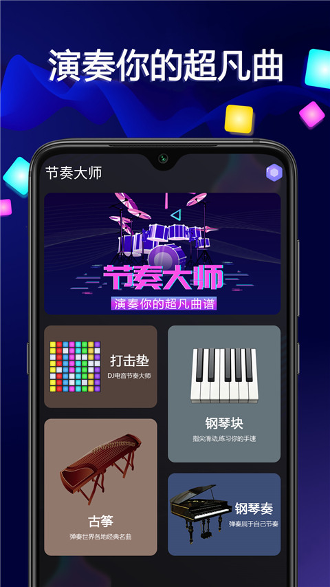 音乐大师app是一款集打击垫、古筝、钢琴、节拍练习多功能为一体的手机版节奏训练软件,主要是专门为打击乐爱好者准备的,特别是架子鼓达人和喜欢打击乐器的人,它为用户提供一个完美的音乐练习以及指法练习的工具,主要是以乐器教学为主,可以在线搜索自己需求的曲谱,同时能够支持了很多品牌的乐器使用,让你能更好的在这里享受音乐的模式,满足于不同方面的简单体验,操作起来也很简单,随时都能在哪里都能弹奏。