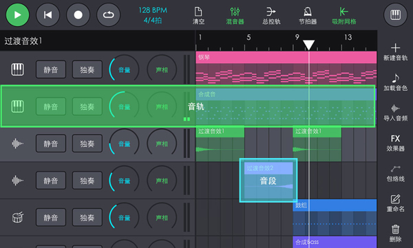通过音轨和音段的编排,就可以制作一首完整的乐曲。