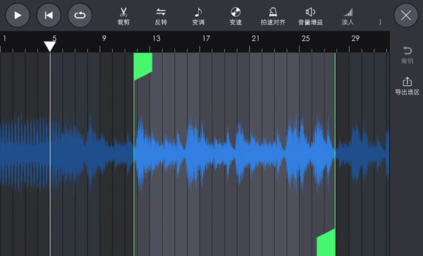 7、操作按钮区域,注意它也是可以上下滑动的,当你选择不同的音轨或音段时,里面的按钮也会发生变化