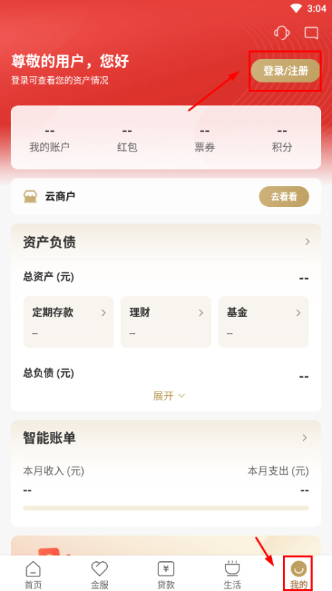 1、打开浙江农商银行app,首先点击右下角我的,然后点击登录;