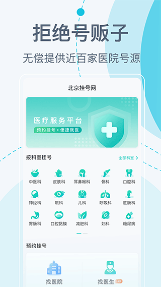 生病了去医院每次挂号要排队很久?那小编推荐你使用北京挂号网app,这是一款为北京市人民提供的一款免费预约挂号手机软件,通过该软件用户可以快速进行线上预约挂号,支持北京160多家医院,并都会提供详细的医生信息、详细科室、权威医生等信息,让您用的更放心,很好的为广大患者提供了更便捷更经济的就医通道,同时还提供号源查询、预约挂号、专家医生简介评分等服务,充分体现互联网+医疗的创新优势,欢迎有兴趣的用户们免费下载体验