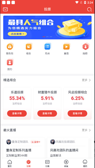 2、点击投股,你可以看到很多资深讲解员为你讲解