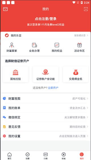 财富乐赚app是一款提供理财服务的应用,现已更名为财信证券,为用户提供最丰富、最及时的证券信息,多种详细的信息分析迅速帮助用户了解市场行情,把握投资时机,迅速提高财产收益值。目前官方正式更名为财信证券,软件提供了秒速行情、极速开户、快速委托、金牌投顾四大功能,为广大股民来实时的查询关于股市的行情和操盘,并且还有免费练习和多种股票推荐,急速开户还有超多专家来帮你投入让你可以把握股市的商机。此外,财富乐赚app为广大客户提供实时股票查询、安全快速交易、理财产品选购、投资顾问咨询、自助业务办理等证券服务,同时也为新客户提供了快速便捷的开户申请入口,能够帮助股民快速掌握技巧,少走弯路。