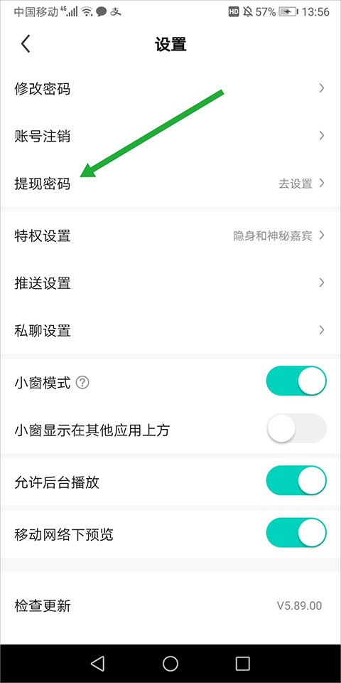 在打开的设置页面中点击【提现密码】可以对提现密码进行设置