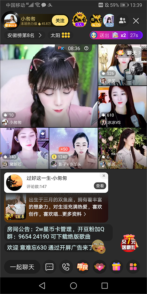 这里是唱歌最好听、音乐互动最愉悦的直播平台,尽情点歌,让艺人用歌声治愈你的疲惫!