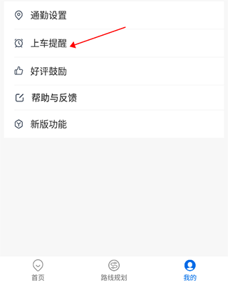 1、打开软件后,在“我的”界面点击“上车提醒”
