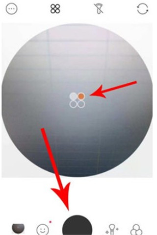 4、点选后,拍摄界面变成圆形,中心的图标为拼图效果图示,可见当下我们要拍摄的是图标左上第一张照片,点击界面下方的拍摄按钮,即可完成拍摄;