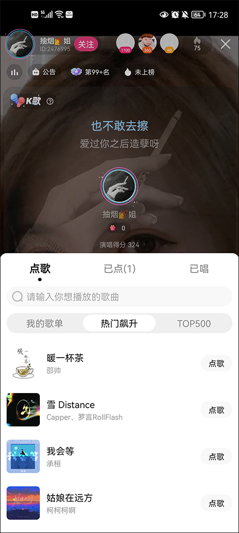 2、你可以在房间中看看直播的范围好不好,在去点自己想唱的歌。
