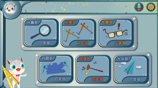 1、在本站下载安装运行葱喵儿奥数app,然后会看到一到六年级,选择适合的的阶段;