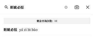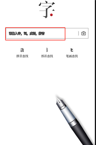 支持输入词、成语搜索,搜索框下方会显示附带拼音的搜索结果及自动联想常用词。也可直接拍照涂抹单字、多字进行文字识别搜索查询。