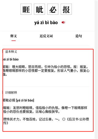 4、可实现深度查询功能,可查询近反义词、成语以及词组等信息
