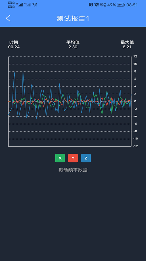 接着用户就可以看到x\y\z不同方向的震动数据线
