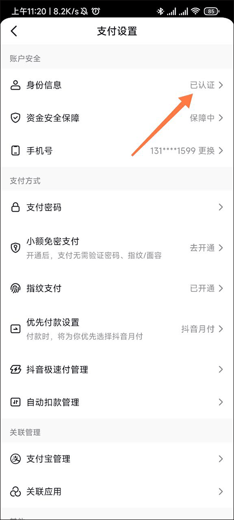2、在账户安全中找到身份信息,点击进入就可以进行实名认证了。