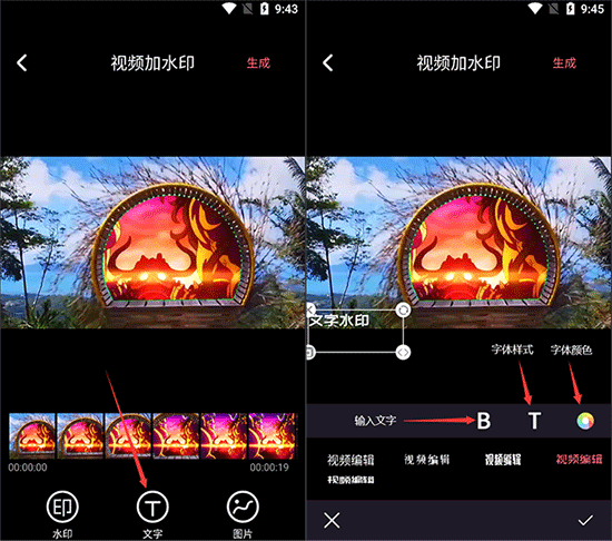 2、添加水印、无痕去水印、添加字幕、文字编辑、贴纸
