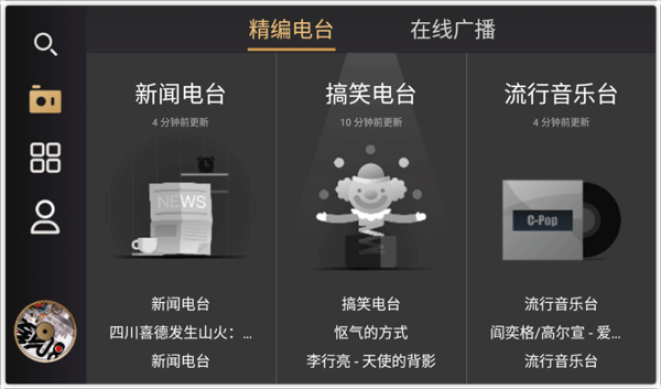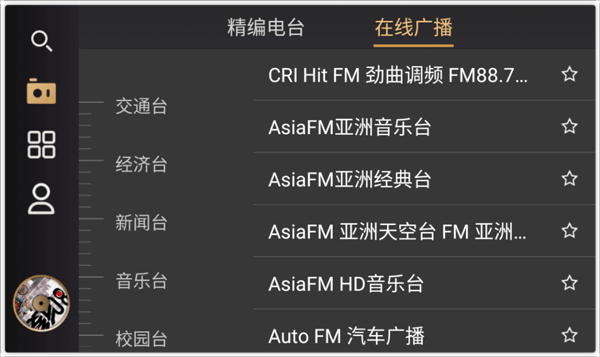 你也可以切换到在线广播,有国家台,省级台,网络台,音乐台,娱乐台,还有方言台,体育台,文艺台,绝对可以满足大家的各种爱好和需求。