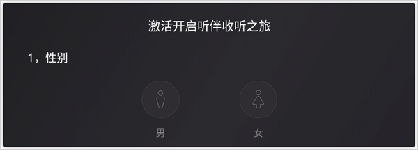 首次使用软件,你需要选择性别,软件会根据性别推荐个性的电台频道。