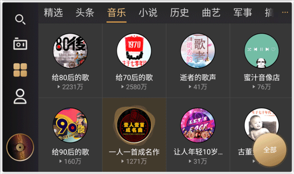 这里博谈天下以音乐频道给大家测评,可以看到里面有送给70后,80后,90后的歌曲,我一边写一边听90后的歌曲,真的满满都是回忆啊。