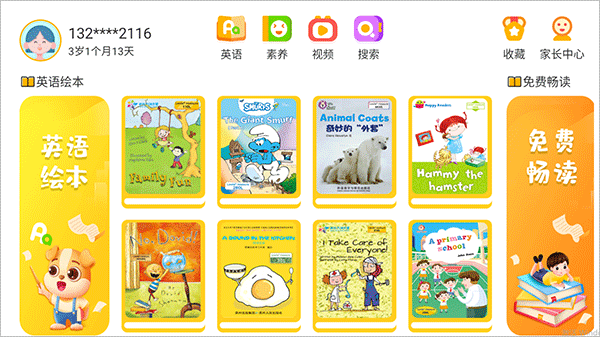软件以英文绘本为特色同时囊获经典童书,童话童谣,启蒙故事,儿歌,古诗,成语故事等等,满足不同用户的学习需求,随时随地在线学习英语,从小打好基础,提升大家的英语水平能力。培养孩子创意想象、思维科学、情商启蒙、习惯养成、阅读启蒙等多领域全面发展。