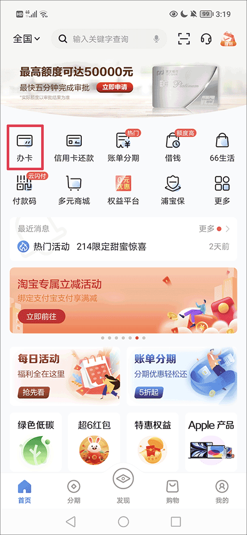 浦发信用卡app最新版2025是上海浦东发展银行旗下的一款信用卡手机客户端,也叫作浦大喜奔、浦发银行信用卡手机app,提供优惠活动、产品资讯、网点查询等服务,可以在境内外超过2000万家的商户签账消费,以及在84万台ATM提取现金,可先消费后还款,还提供高达50天的免息还款期。