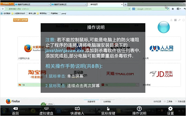 点击列表中的电脑,并连接电脑,这时候会弹出对话框让你输入连接密码,连接密码就是之前在电脑端设置过的密码。密码输入之后点击确定,就可以开始控制电脑啦第次控制电脑,会弹岀操作说明对话框,请仔细阅读其中的内容哦。