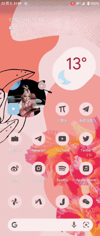 在 Android 13 中,Google 对正在播放卡片进行了大改,并提供了 api 给开发者进行适配。椒盐音乐在第一时间就跟进了这一特性,不仅有波浪式的已播放进度条,还有大个的暂停播放按钮。相