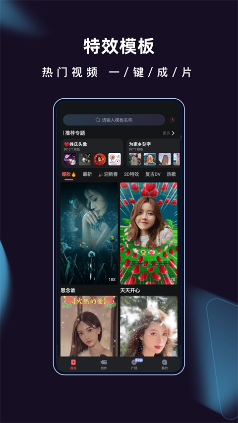-「模版」一键选择特效短视频模板,生成特效视频