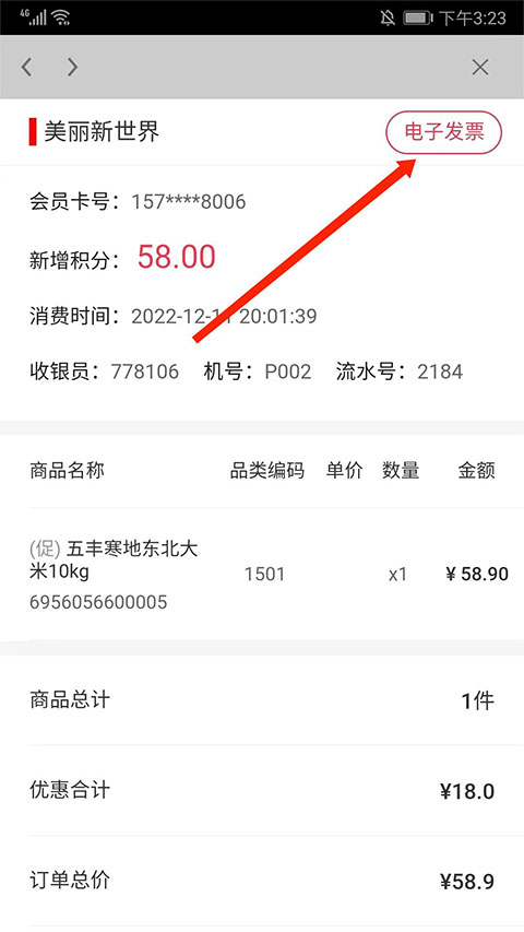 4、进入订单详情界面,选择右上角“电子发票”选项,