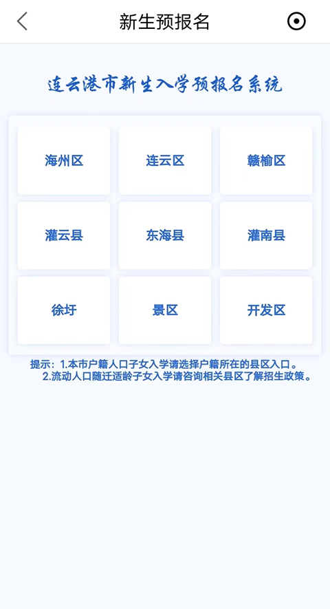 3、选择报名所在地区,随后就可以进行信息填报,所填报的学生、父母(或法定监护人) 户籍、房产等信息均可在户口簿、房产证或不动产权证查看。注意同一学段只能报名一所学校。公办、民办学校不得兼报。为避免网络拥堵,请错峰填报。