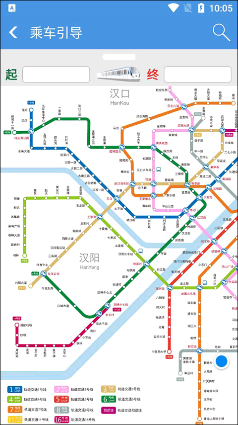 进入界面后我们可以看见整个武汉地铁的线路图,这个时候我们只需设置好起点和终点就可以了。