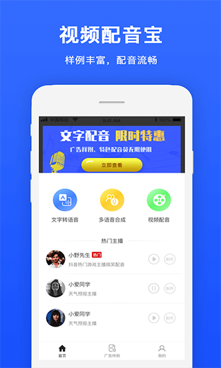 素材丰富:海量样音文案模板,优质背景音乐,打造专属于你的配音效果