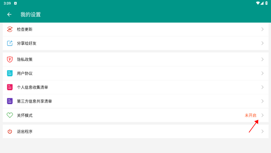 2、进入设置界面后,点击关怀模式右侧的开关即可开启啦。