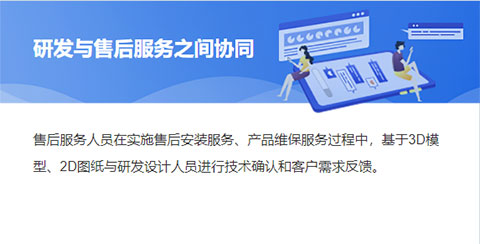 售后服务人员在实施售后安装服务、产品维保服务过程中,基于3D模型、2D图纸与研发设计人员进行技术确认和客户需求反馈。